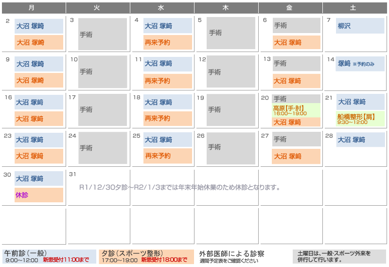 整形外科月間予定表